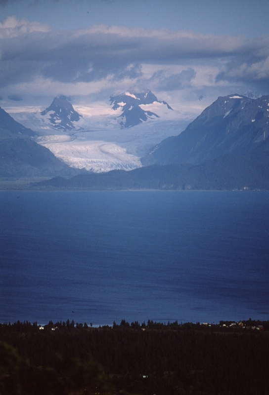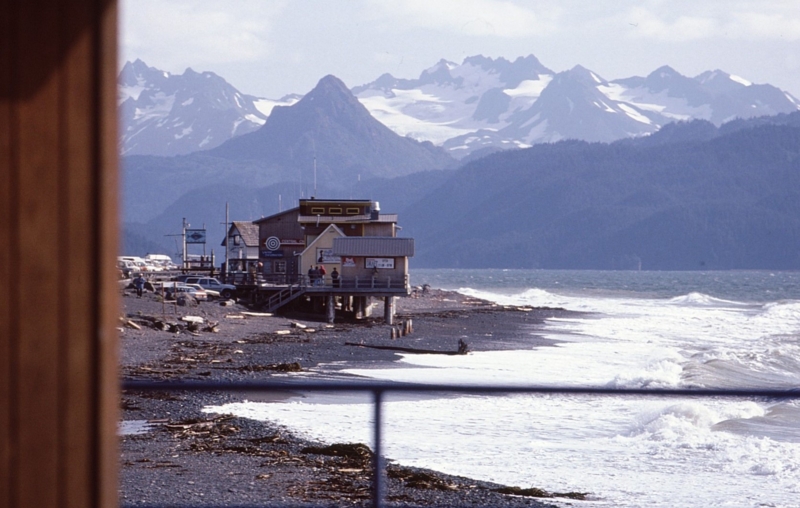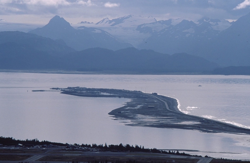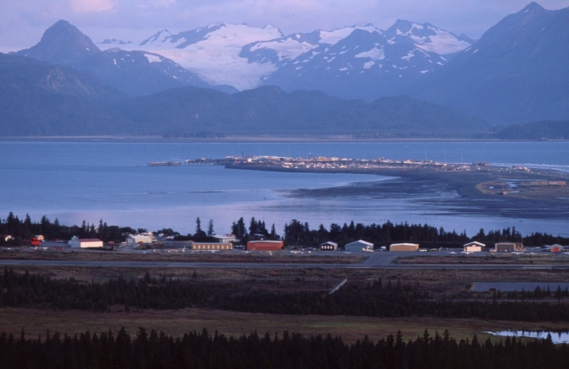 Kachemak湾に突き出すホーマーの砂嘴・・・先端が漁港