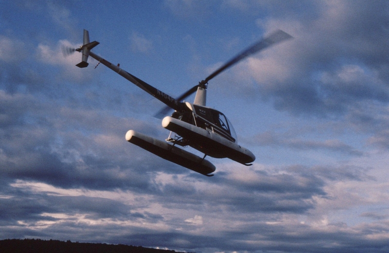 ヘリのフロートはゴムボート素材・・・水にも浮く