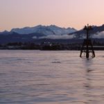 右側の陸地がピータースバーグの町