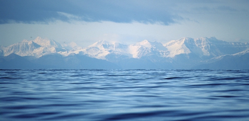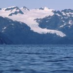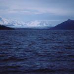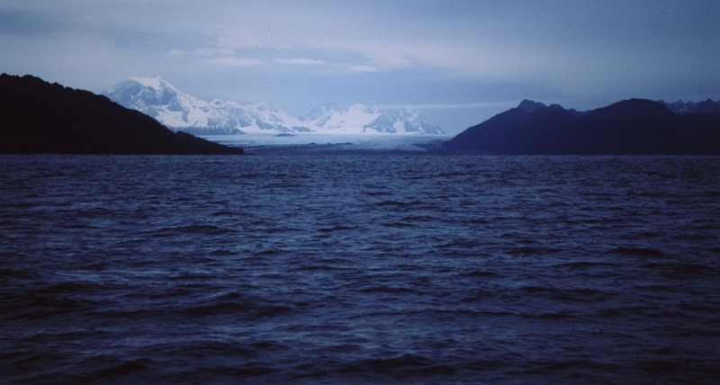 左舷、北側にTaylor Bayその奥にBrady Glacierゆったりと蛇行し海に消える