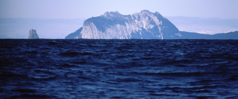07時27分、灯台正横にて変針しCross Soundへ入る・・・潮目の上空に海鳥が乱舞している