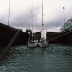 ヨットは船団を組み運河通過(パナマ運河)
