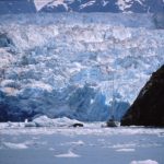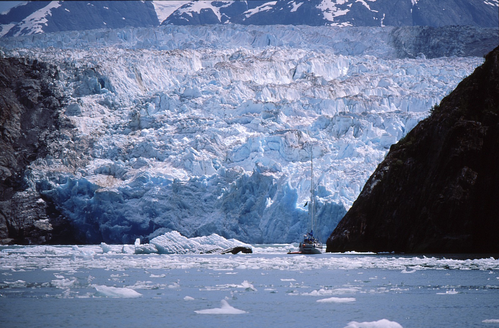 氷河に大接近するヨット(アラスカ 氷河湾)