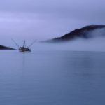 1038mb、気温8℃、霧、無風・・・霧の中から漁船