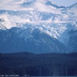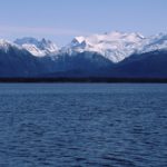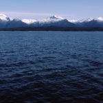 10月14日 Petersburgへ・・・ゴージャスな山岳風景 10月14日、06時起床、気温0℃、ついに零下となる。凍る船外機カバー 林間の谷間から一瞬見えた岩峰・・・元クライマーの血が騒ぐ!! 12時04分、Boulder Pt.にかかり北東に広がる風景に圧倒される ランゲル・ナローズ(狭水路)の入り口の港町
