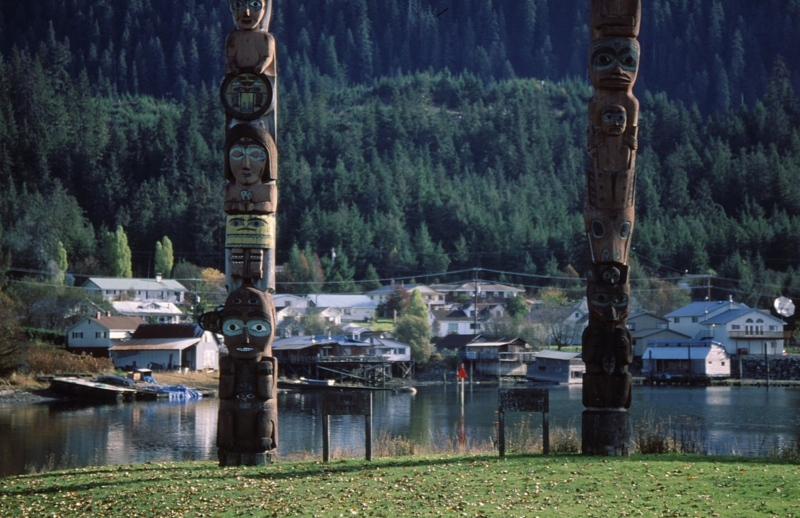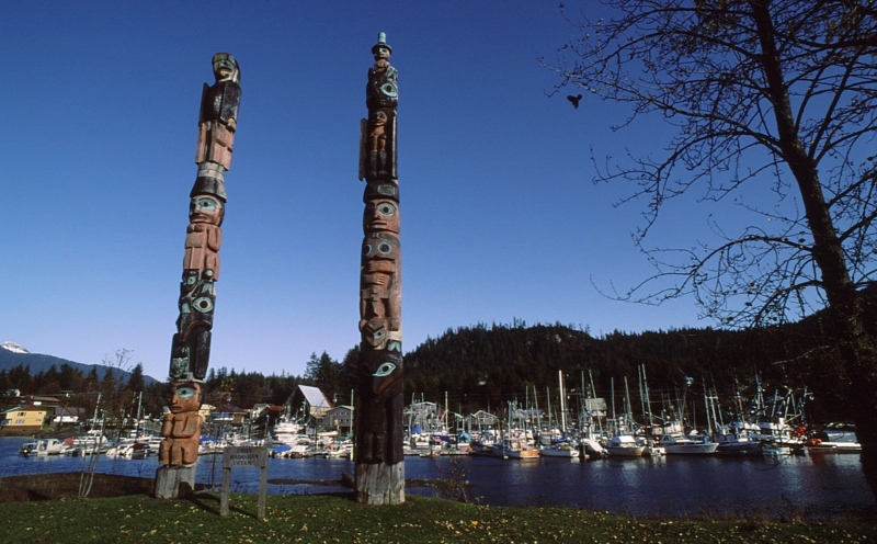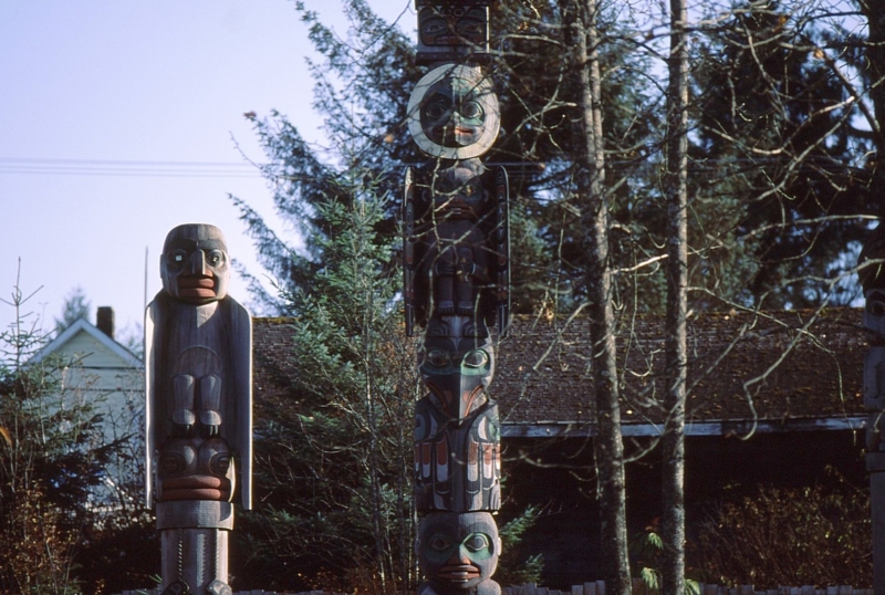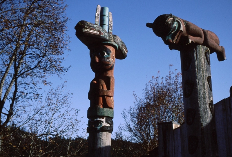 写真上  トーテムポール・・・左はオルカ、右は熊