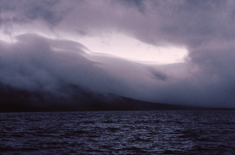 低気圧の中心、992mb・・・大荒れの海、妻声なし