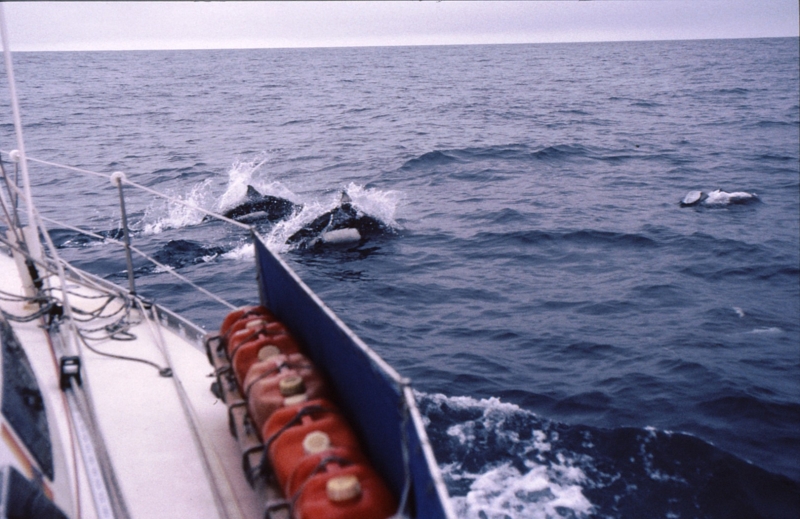 新しい友達・・・舳先に小型のイルカたち伴走